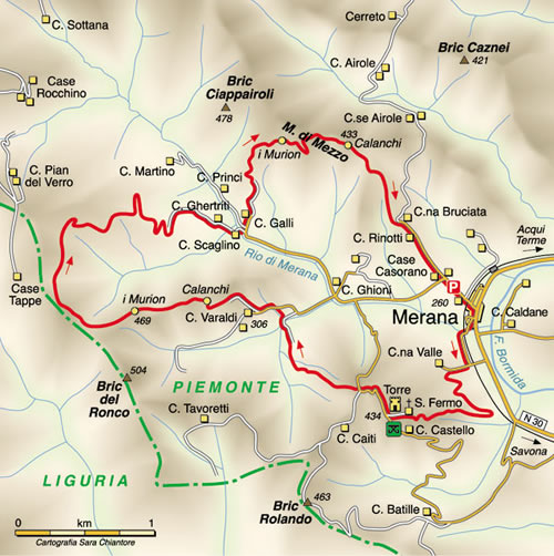 Il percorso si snoda dal fondovalle segnato dal fiume Bormida e risale lungo uno spartiacque caratterizzato da formazioni rocciose sedimentarie interessanti perche’ ci permettono di ricostruire l’evoluzione delle Alpi e della pianura padana negli ultimi 35 Milioni di anni. Di come un mare si e’ trasformato in un’area continentale fertile e di come, nel frattempo, si e’ innalzata la catena degli Appennini.